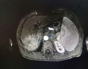 The patient, a 55-year-old male, was admitted to the hospital on March 11, 2021 due to “upper abdominal distension, pain and discomfort for more than 1 year, and recurrence for more than 2 months”. More than 1 year ago, the patient had no obvious inducement of upper abdominal distension, pain and discomfort, no acid reflux, heartburn, no nausea, vomiting, no hemesis, melena, no chest pain, chest tightness and other discomfort, no care, no diagnosis and treatment. Before 2 months, the patient’s symptoms were aggravated again, and the symptoms continued to be not relieved, so the emergency department was admitted to our hospital as “abdominal distension cause check”. Previous healthy, smoking and drinking history, no similar patients in the family. Improve relevant examinations after admission, such as: Infectious disease screening: hepatitis B surface antigen (gold standard method) positive (+), HBVDNA: 3.89 x 106 IU/ml, TAP: 128.03 um², liver function:TP: 50.23 g/L ALB: 27.8 g/L, TBIL: 34.8 g/L, DBIL: 15.00 g/L, IBIL: 19.8 g/L, ALT: 27 g/L, AST: 51 g/L, PCHE: 1879 g/L, AFP: 203.8 ng/ml, Color Doppler ultrasonography of chest and abdomen showed that liver cirrhosis was possible, portal vein velocity decreased, liver disease gallbladder, splenomegaly and splenic vein dilation. 256 row chest and upper abdomen CT (plain scan + enhanced): 1. Ground glass shadow of left lung, follow-up and reexamination are recommended; 2. Liver cirrhosis, splenomegaly, esophagogastric fundus and splenic collateral circulation; The abnormal enhancement focus in the right lobe of the liver, considering the high possibility of liver cancer, the remaining small nodule like enhancement in the liver, considering intrahepatic metastasis (Figure 1). 3. Gastric antrum space occupying, considering malignancy, please combine clinical and pathological findings. 3.0 Mr upper abdomen (plain scan + enhancement): 1. Liver cirrhosis with regenerative nodules, splenomegaly, portal hypertension, ascites and collateral circulation; 2. Abnormal signal of right posterior lobe of liver (Figure 2). Considering malignancy, please combine clinical and AFP examination. Gastroscopy showed: 1. Esophageal gastric fundus varices (severe); 2. Gastric antrum space occupying: Ca? (Figure 3); Gastric antrum pathology (HE staining Figure 4) results: (gastric antrum) adenocarcinoma. Liver puncture pathology (immunohistochemical (Figure 5) diagnosis: (liver puncture) combined with immunohistochemical results, it is consistent with hepatocellular carcinoma. Immunohistochemistry: CerbB2 (0), CK (+), HEPA (partial +), glypican (+), CD (small amount +), CD34 (blood sinus +), CK7 (-), CK8 (+), CK19 (-), CDX2 (-), Ki67 (50% +), GS (+), CK20 (-). Physical examination: Body temperature was 37OC, pulse was 78 beats/ min, respiration was 20 beats/min, blood pressure was 120/70 MHg, skin and mucosa of the whole body were mildly yellow, no rash, bleeding spots, liver palm or spider nevus, superficial lymph nodes were not touched and enlarged, and no obvious abnormalities were found in head, neck, heart and lungs during physical examination. Abdominal distention, soft abdomen, no obvious tenderness, rebound pain and muscle tension in the abdomen, liver, spleen and ribs are not touched, negative mobility dullness, bowel sounds are normal. The patient refused interventional therapy, asked for oral chemotherapy and was discharged after her symptoms improved.