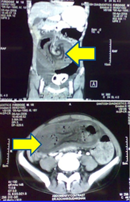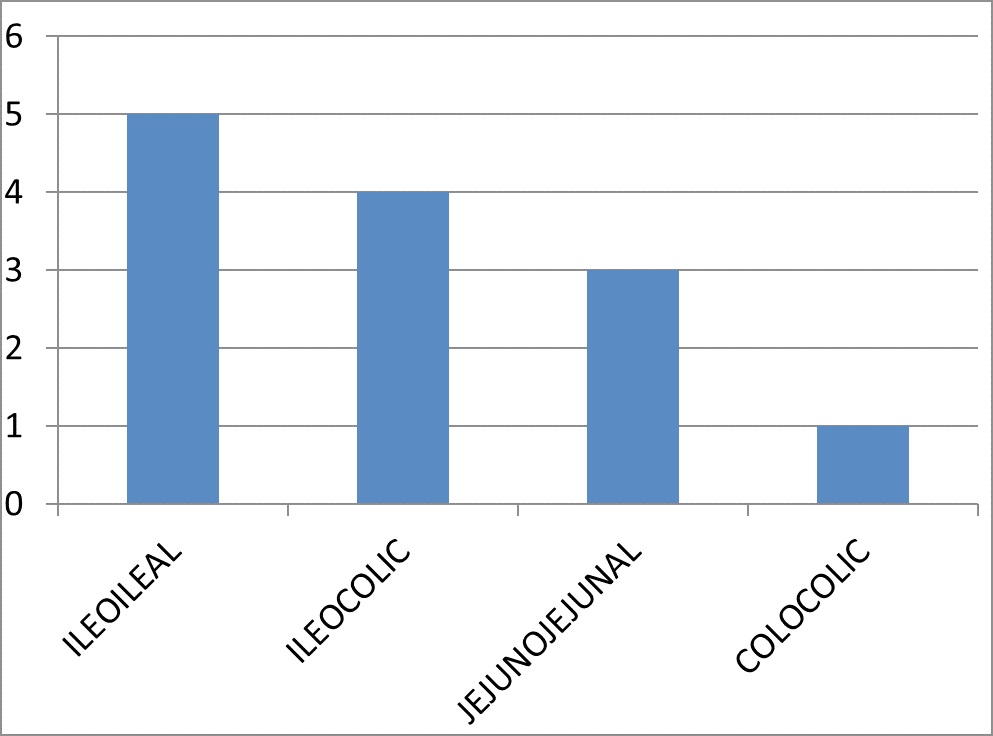 • 1 case was of chronic intussusception with benign polyp as lead point in ascending colon