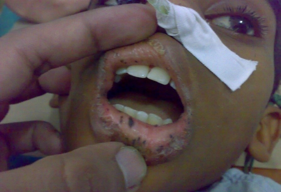 Hyperpigmented spots on both the lips & buccal mucosa |