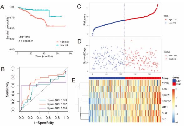Keywords: Hepatocellular carcinoma; Cuproptosis; Prognostic risk model; DLAT; Therapeutic target.