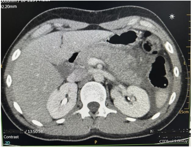 A Moroccan 17 year old male presented to the emergency department for four days of newly experienced epigastric pain associated to non-bloody and non-bilious emesis. The patient the child was diagnosed with epilepsy for which treatment with sodium valproate was initiated. The last dosage is changed nine months before from 750 mg to 1 g to maintain a dose of 20 mg/kg/d. There was no seizure the last year. On presentation he denied history of other new medications, supplements, alcohol or drug use, gallstones, fevers or chills. The epigastric pain was intense and resistant to anttispasmodic and oméprazole. Physical examination on arrival was notable for uncomfortable appearing, he complains of intense localized pain in the epigastrium radiating towards the back with an attitude of leaning forward. He was apyretic. On palpation we noted a focal epigastric tenderness with non-peritonitic abdomen. Respiratory and hemodynamic functions were stable. blood pressure 125/67, pulse 87, respiratory rate of 20, spo2 of 100%. The rest of the physical examination findings were unremarkable without any rashes, joint swelling, or adenopathy. Serum laboratory investigations in the emergency department revealed the following pertinent and significant findings: lipase level of 462 U/l, white blood cell count of 11.000 per mm3 , Activated protein C 27 mg/l, hemoglobin 10.6 g/dl, AST 28U/L, ALT 25U/L, Total bilirubin 8.2 mg/L, sodium 141 mmol/l, potassium 4.2 mmol/l, BUN 0.35 g/l, creatinine 10,2 mg/l, calcium 90 mg/l, and. All other initial laboratory invetigations within normal limits or insignificant. Patient was resuscitated with two liters of isotonic saline serum, received a total of 40 mg of intravenous omeprazole, 500 mg of intravenous paracetamol, and 4 mg of intravenous morphine. Initial abdominal ultrasound showed a normal gallbluddder, without any stones, gallbludder wall thickening, or common bile duct dilatation. the pancreas is globular with infiltration of gastric fat and presence of moderate peritoneal effusion (Figure 1). Subsequently, patient underwent a computed tomography of abdomen and pelvis with intravenous contrast (Figure 2). The pancreas was enlarged, had a homogeneous density, with a discreet homogeneous enhancement without an area of pancreatic parenchymal necrosis. presence of a peritoneal effusion of medium abundance surrounding the pancreas, perigastric, perihepatic, perisplenic level and in pelvic slope. The gallbladder, bile ducts, liver, spleen and kidneys were without abnormalities. The appearance was an acute edematous pancreatitis grade E of Balthazar. Patient was admitted to intensive care unit, he continued to receive intravenous boluses and maintenance fluids per standards of care for acute pancreatitis, along with adjunct therapies including antispasmodic, omeprazole and morphine to control pain. Food is reintroduced gradually from the 3rd day after the nausea and vomiting have disappeared and the pain has been controlled. we started with water, herbal teas, vegetable broths in small volumes. All this while monitoring digestive tolerance and the absence of pain. During the first days of hospitalization, patient underwent an extensive panel of investigations including bili-MRI showed the absence of stones in the Wirsung duct and bile ducts which are not dilated, no malformation or pancreatic mass is revealed (Figure 3). The other investigations were hematological toxicology screen, viral screening (including A, B and C hepatitis panel, respiratory viral panel, measles mumps rubella panel Epstein barr, cytomegalovirus panel), TPHA VDRL serology, tuberculosis quantiferon, lipid panel (cholesterol 1.46 g/L, triglycerids 0.9 g/L), blood smear, thyroid panel, antinuclear and anticardiolipin antibodies, hemoglobin electrophoresis; all returning either within normal or unremarkable limits. The absence of another cause responsible for pancreatitis led us to consider the drug etiology, particularly sodium valproate. Neurology consult was placed. Treatment with valproate of sodium was stopped and replaced by levetiracetam 250 mg twice a day. The opatient made a full recovery and was discharged after a total of eight days with prescription of levetiracetam. Any epileptic crisis was observed. The patient continue to have regular outpatient neurology follow up.