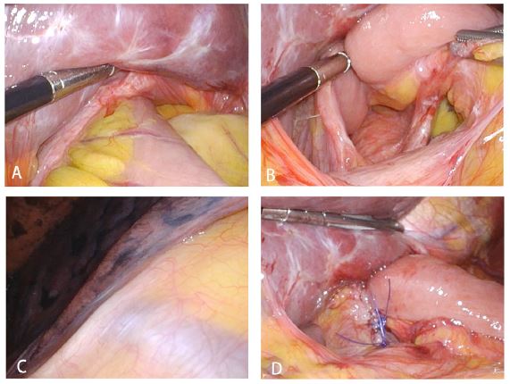 Postoperative Hiatal Hernia is defined as a condition in which abdominal organs (mainly the stomach) herniate through the esophageal hiatus into the thoracic cavity, making it the most common type of diaphragmatic hernia, accounting for over 90% [11]. This condition usually occurs in the early postoperative period, with complex hiatal hernias potentially developing within the first year after surgery but also observed up to five years postoperatively [12]. Generally, the later the symptoms of a postoperative hiatal hernia appear, the milder the condition. Patients often present with abdominal pain, which may manifest as symptoms of partial gastrointestinal obstruction, such as constipation, bloating, and significantly reduced flatulence. Some patients may also exhibit symptoms of chest tightness, shortness of breath, and cardiac insufficiency.